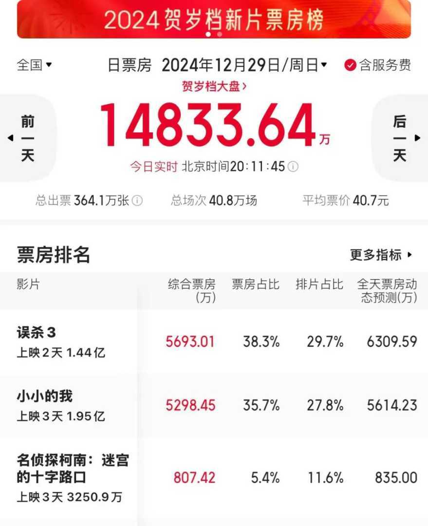 《误杀3》《小小的我》票房双丰收,贺岁档总票房近27亿