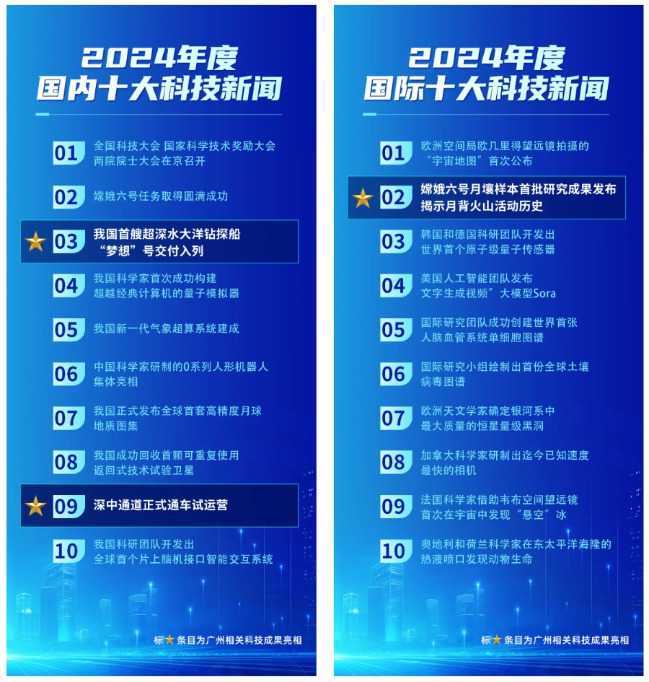 图为2024年度国内&国际十大科技新闻(来源:广州市科学技术局官号)
