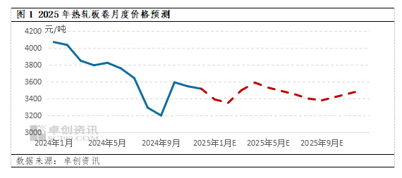 综合以上因素及热轧板卷需求释放的季节性特点,预计2025年热轧板卷均价将继续下滑,但考虑到宏观层面的支撑作用,价格跌幅或较2024年有所收窄。