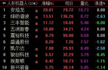 1月13日,人形机器人概念在股市中领涨,连续第五天上涨,累计涨幅达到12.77%。其中,安培龙今日20%涨停,绿的谐波涨逾13%,五洲新春三连板,三丰智能、震裕科技、骏创科技等个股也均大涨。