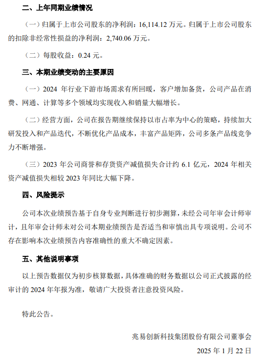 兆易创新预计2024年归母净利润大增576.43%