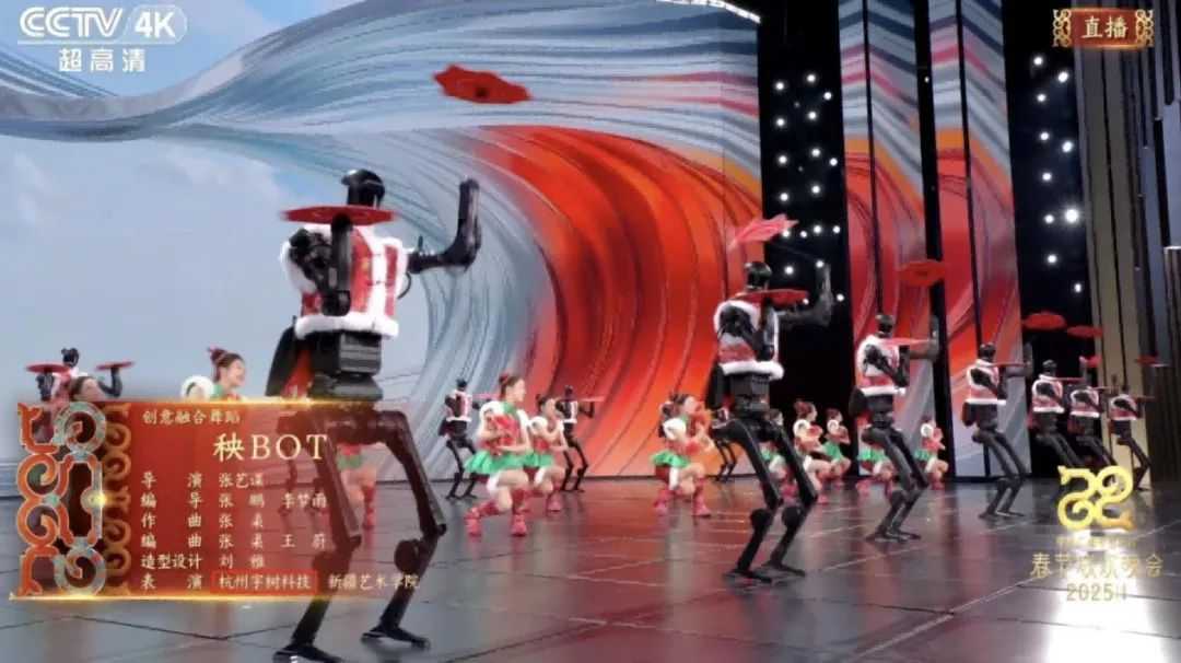 【大河财立方记者王宁宁报道】在2025年1月28日晚的央视蛇年春晚中,一场别开生面的表演吸引了全国观众的眼球。来自杭州宇树科技的16个人形机器人,身着色彩斑斓的大花袄,在舞台上整齐划一地表演了丢手绢、扭秧歌等节目,成功成为了春晚舞台上的焦点之一。这场名为《秧B0T》的舞蹈节目,由著名导演张艺谋执导,宇树科技的人形机器人H1与新疆艺术学院的学生共同呈现。