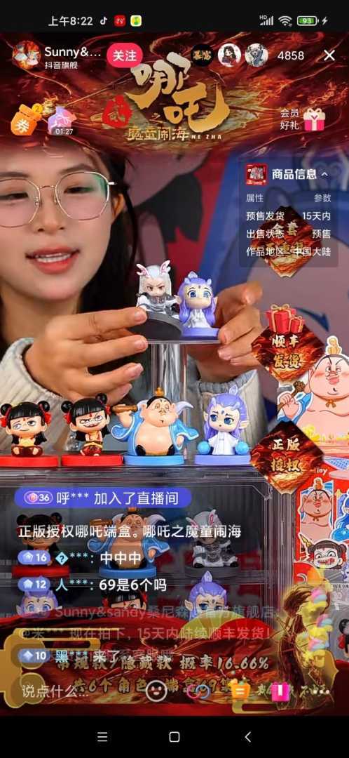 桑尼森迪工作人员介绍称:“在大年初一,公司即在抖音平台开启《哪吒2》周边系列手办盲盒的预售活动。截至2月6日11时,已预售出34万余套产品,位居抖音带货榜桌游周边类产品榜首。同时,公司在农历新年前生产的一批哪吒印章款盲盒产品专供好想来零食店,目前也已销售一空。自大年初六起,公司全面复工,以满负荷状态投入生产。”