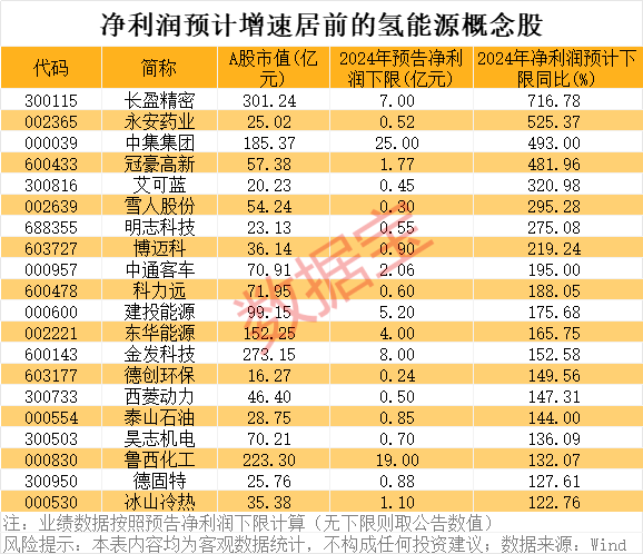 中国是全球最大的氢气生产国和消费国,工业领域是清洁低碳氢最大的用武之地。近年来,我国氢能产业发展迅速,涵盖了氢气制取、存储、运输、应用全链条。A股市场上,超过330家上市公司涉及氢能源产业链。从业绩数据来看,2024年净利润同比增长的氢能源概念股有54只。长盈精密、永安药业、中集集团等股净利润增速靠前。净利润增速最高的是长盈精密,公司预计2024年净利润为7亿元至8.2亿元,同比增长超7倍。报告期内,消费类电子及新能源市场持续复苏向好。