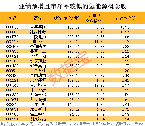 在这些业绩预增的概念股中,截至2月10日收盘,上海电力、鲁西化工等股市盈率较低。市净率方面,中集集团、建投能源等股市净率处于较低位置。