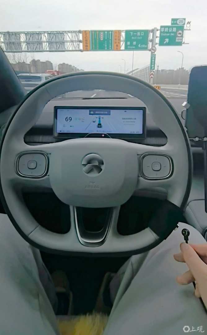 记者找来一辆蔚来汽车,按照商家视频的方式,预先把电线插在车载充电口,将绒布紧紧缠绕在方向盘上。蔚来汽车客服人员曾告诉记者,车辆通过方向盘上的“增强型驾驶员感知”摄像头和方向盘脱手检测来判断智驾过程中驾驶员是否分心驾驶。