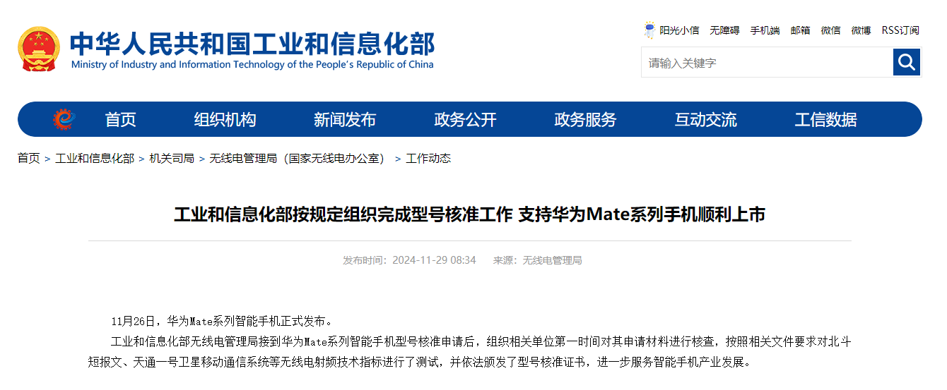 据工信部官方网站最新发布,11月26日,备受瞩目的华为Mate系列智能手机正式面世。此次发布不仅标志着华为在智能手机领域的又一里程碑,更展现了其在技术创新上的不懈追求。