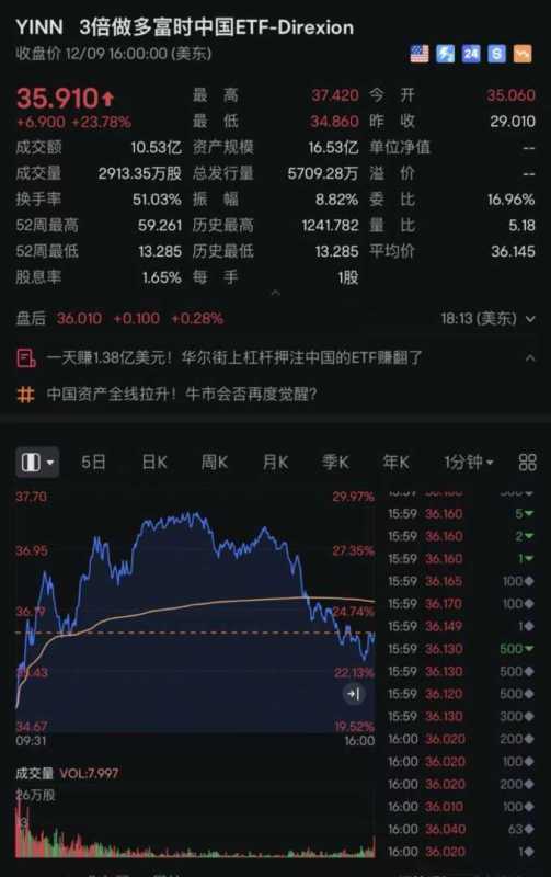 3倍做多富时中国ETF的涨幅也接近24%,显示出投资者对中国资产的强烈看好。