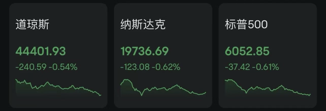 然而,美股市场整体表现不佳,三大指数均以下跌收盘。截至收盘,道琼斯工业平均指数下跌0.54%,纳斯达克综合指数下跌0.62%,标普500指数下跌0.61%。尽管市场整体下跌,但中国资产的表现仍然亮眼。