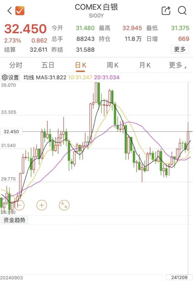 地缘政治紧张局势再度升级,市场避险情绪显著增强。受此影响,国际贵金属价格出现强势反弹。伦敦金现一度上涨超过1%,最高触及2676.08美元/盎司;伦敦银现也站上32美元/盎司的关口,为近期首次。在期货市场,COMEX黄金期货和白银期货同样表现不俗,分别上涨0.88%和2.73%。