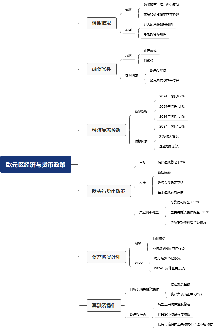 欧洲央行的三个关键利率已下调25个基点,存款便利、主要再融资操作和边际贷款便利的利率分别降至3.00%、3.15%和3.40%,自2024年12月18日起生效。此外,APP投资组合正以稳健和可预测的速度减少,PEPP投资组合也将于2024年底停止再投资。