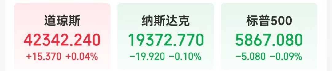 当地时间12月19日,美股三大指数收盘表现分化,纳指微跌0.1%,标普500指数微跌0.09%,而道指则微涨0.04%,其中道指成功终结了此前连续的10个交易日下跌态势。