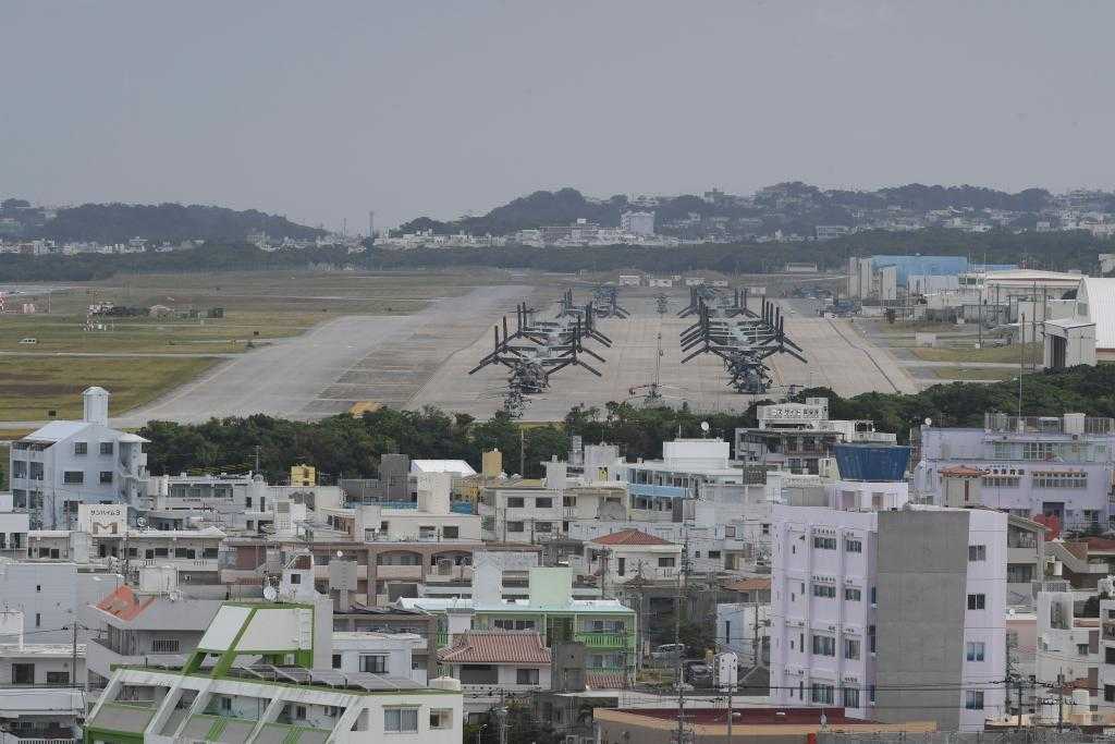 2023年11月25日,日本冲绳美军普天间基地驻留的“鱼鹰”运输机(资料照片)。新华社记者冯武勇摄