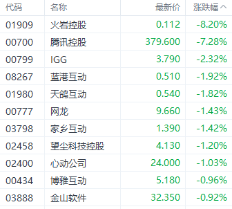 受互联网股下跌影响,游戏股也表现不佳。截至收盘,IGG(00799.HK)、网龙(00777.HK)、心动公司(02400.HK)分别下跌2.32%、1.43%、1.03%。