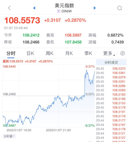 1月7日晚间,美股三大指数高开跳水,纳斯达克指数跌超1%,标普500指数跌约0.5%。英伟达等科技股纷纷大跌。最新美国经济数据发布后,市场担忧美联储降息预期被打乱,美债收益率齐升压低美股。
