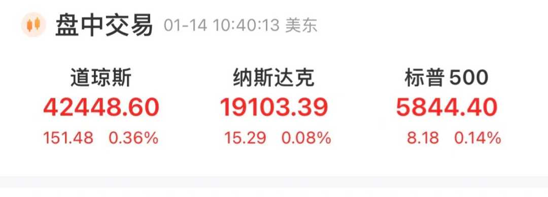 北京时间1月14日晚间,美股市场传来积极信号,三大指数集体高开。截至发稿,道琼斯工业平均指数上涨0.36%,纳斯达克综合指数上涨0.08%,标准普尔500指数上涨0.14%。市场交投活跃,投资者情绪乐观。