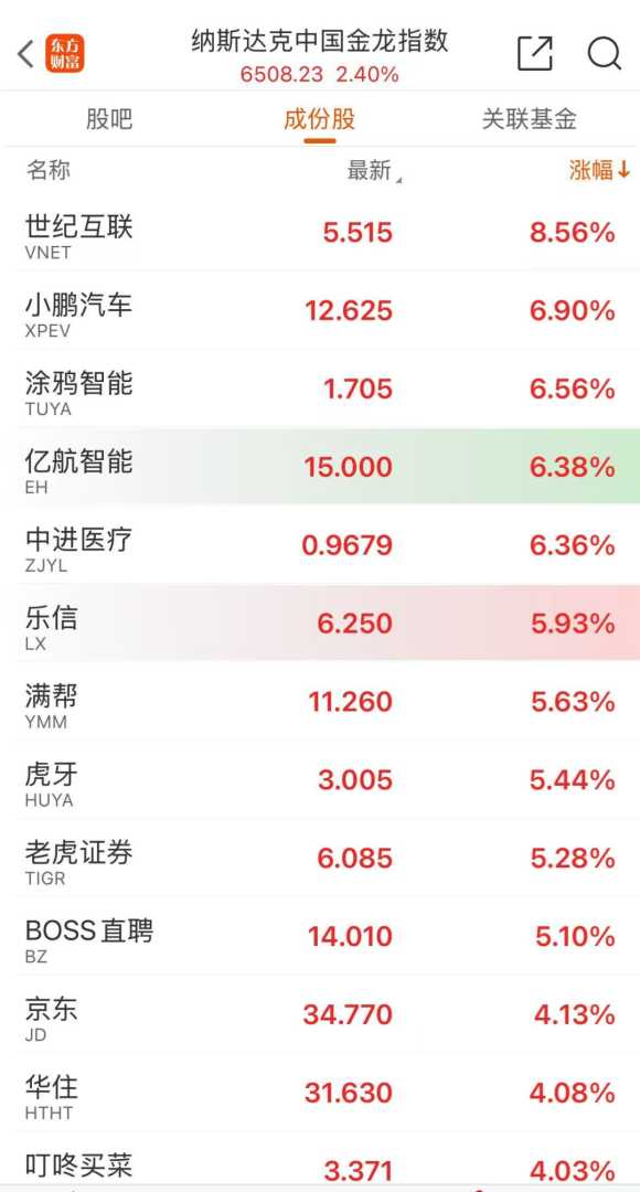 在美股市场中,热门中概股表现尤为亮眼,纳斯达克中国金龙指数一度上涨近3%。具体来看,截至发稿,小鹏汽车股价涨幅接近7%,世纪互联上涨超过8%,京东、哔哩哔哩涨幅均超过4%,理想汽车涨幅接近4%。这些中概股的强劲表现,显示出市场对中国经济和科技企业的信心。
