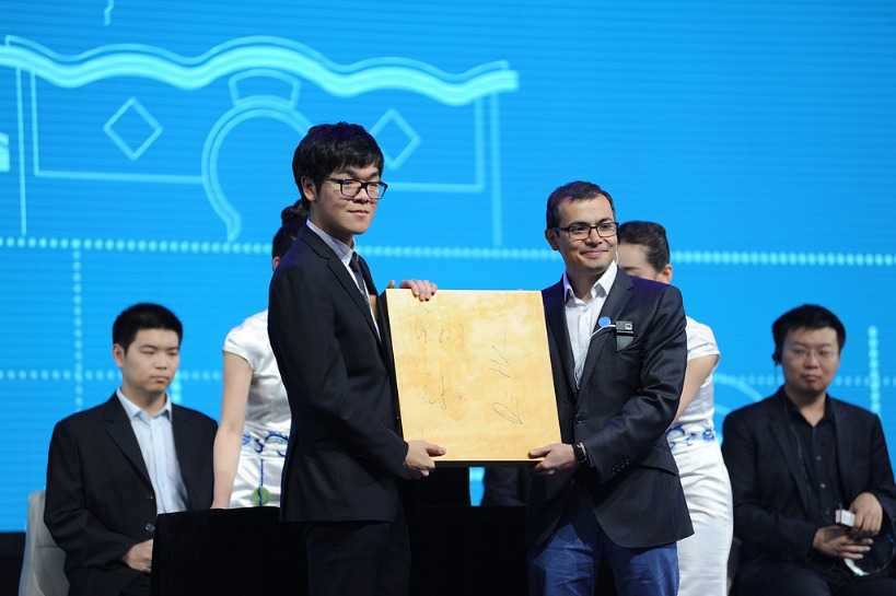 图中为柯洁与哈萨比斯的合影。