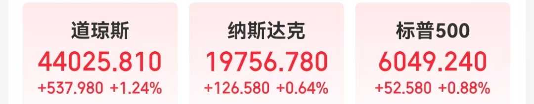 当地时间1月21日,美股市场迎来全面上涨行情,其中道琼斯工业平均指数大幅攀升537.98点,涨幅达到1.24%;纳斯达克综合指数则上涨126.58点,涨幅为0.64%;标普500指数同样不甘示弱,上涨52.58点,涨幅锁定在0.88%。