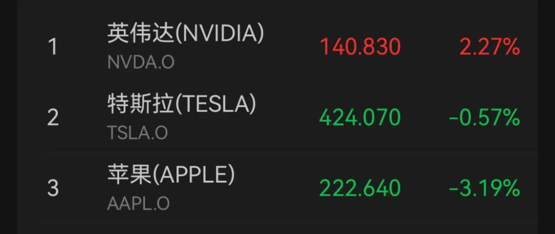 在科技股方面,特斯拉下跌0.57%,这主要受到美国政府取消电动汽车行业支持政策的影响。苹果股价则大跌逾3%,收于222.61美元/股,市值缩水至3.348万亿美元。知名投行杰富瑞分析师下调苹果评级,指出iPhone 17和18硬件升级有限,难以推动销量增长。与此同时,英伟达、亚马逊、谷歌-A和Meta等科技巨头则表现不俗,分别上涨2.27%、逾2%、逾1%和0.60%。