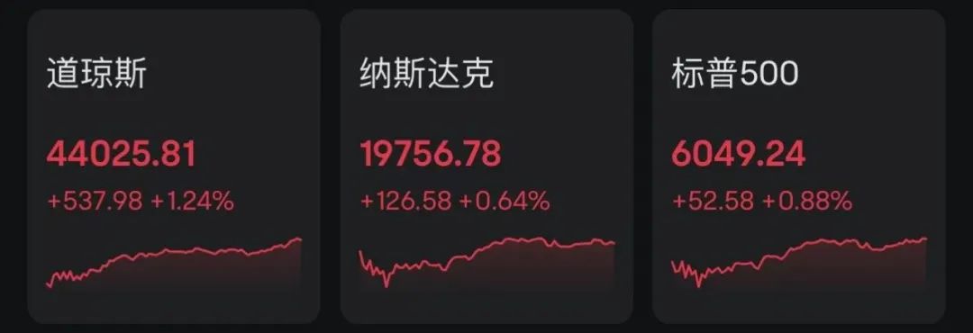 当地时间1月21日,美股市场迎来了久违的强劲反弹。截至收盘,道琼斯工业平均指数(道指)大幅上涨1.24%,报收于44025.81点,涨幅超过500点;纳斯达克综合指数(纳指)也上涨0.64%,报收于19756.78点;标准普尔500指数(标普500指数)同样上涨0.88%,报收于6049.24点。