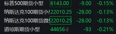 在美股开盘前,三大股指期货均呈现下跌趋势。其中,纳斯达克期货下跌0.07%,标普500指数期货下跌0.13%,道琼斯期货下跌0.27%,显示出市场投资者对短期走势持谨慎态度。