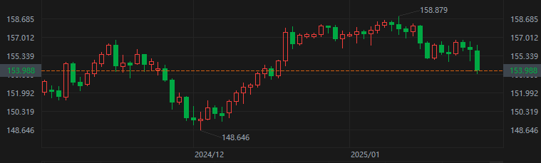 截至本文发布,美元兑日元汇率已跌至153.98,日内跌幅超过1.3%,即200个基点,最低触及153.71,创下了自2024年12月19日以来的新低;同时,美元兑瑞郎汇率也下跌0.8%,至0.8986,为去年12月24日以来的最低水平。