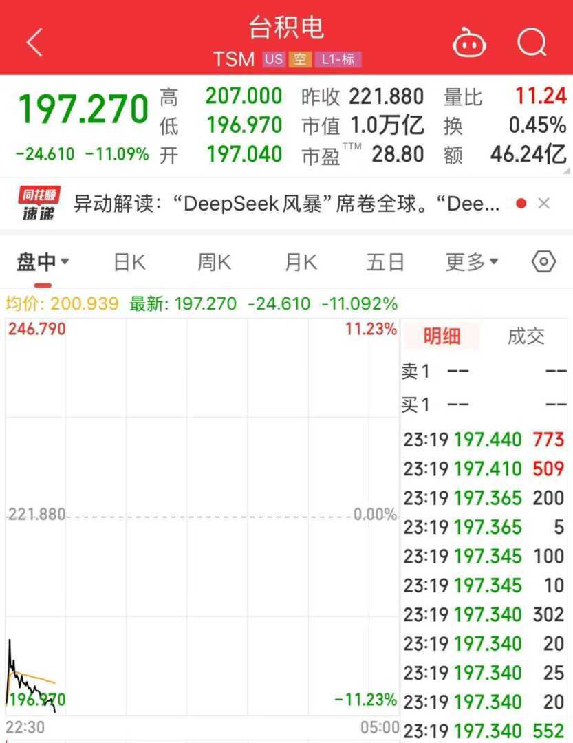 中国人工智能初创公司深度求索(DeepSeek)推出新模型,以极低成本实现与OpenAI相当性能,引发美股科技股巨震。纳斯达克市值前十科技公司总市值开盘缩水近1万亿美元,芯片相关资产悉数下挫。