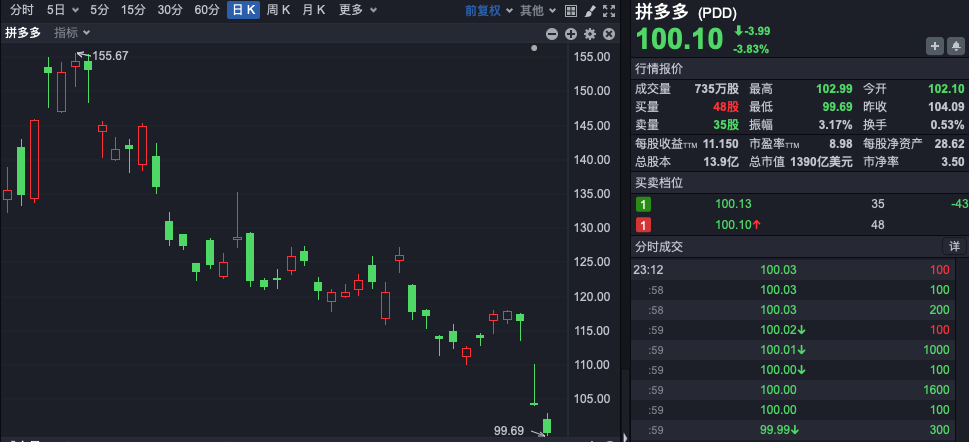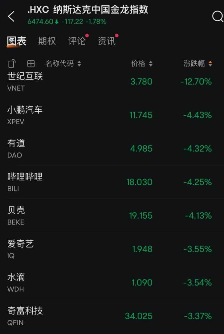 周五晚间,美股市场呈现分化格局,三大指数涨跌互现。其中,热门中概股延续近期颓势,纳斯达克中国金龙指数收盘下跌1.7%。具体个股方面,小鹏汽车和哔哩哔哩跌幅均超过4%,爱奇艺、理想汽车和阿里巴巴的跌幅也均超过2%。拼多多在经历昨日大跌逾10%后,今日盘中一度再次下跌近4%,摩根大通因业绩不及预期将其评级下调至中性,目标价为105美元。