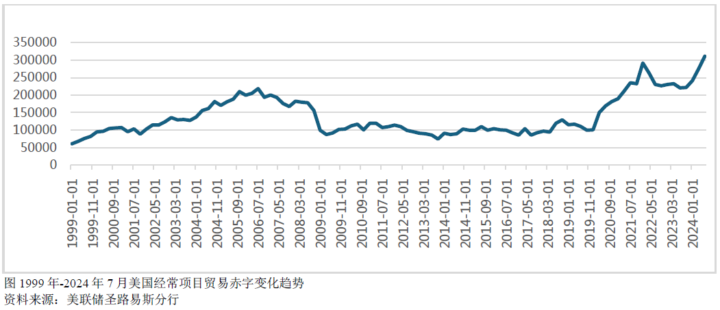 美国对外贸易长期赤字的原因复杂多样。自1991年以来,美国经常性项目贸易赤字一直处于赤字状态。尽管在次债危机期间赤字有所下降,但自2020年以来又大幅上升。即使在特朗普第一任期间,关税政策并未降低美国的贸易赤字水平。美国对外贸易赤字的长期存在,既与全球经济一体化加速制造业外包有关,也受到美国人工成本过高、长期低利率低通胀环境刺激国内消费、以及政府政策连续性不足等多重因素的影响。