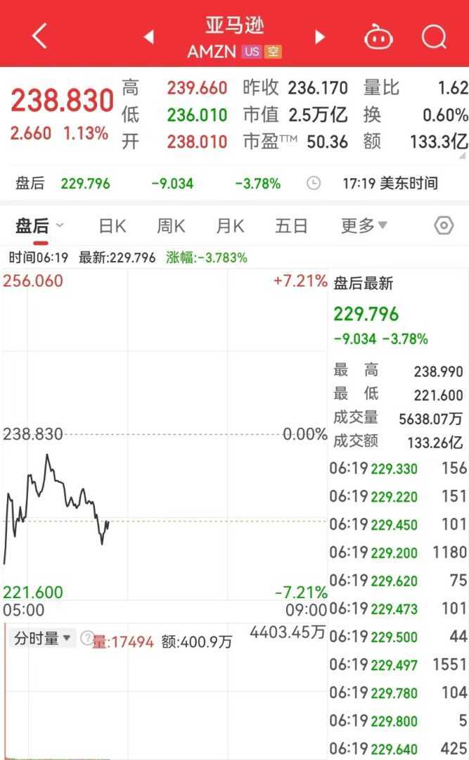 然而,亚马逊在美股盘后交易中一度下跌超过6%。根据其最新财报,亚马逊2024年第四季度销售净额达到1877.9亿美元,同比增长10%,略高于市场预期的1873.2亿美元;AWS净销售额同比增长19%,至287.9亿美元,略低于预估的288.2亿美元;每股收益为1.86美元,远超预估的1.50美元和前季的1.43美元;经营利润同比增长61%,达到212亿美元,也高于预估的188.4亿美元。但亚马逊对2025年第一季度的销售净额和经营利润的预估均低于市场预期。