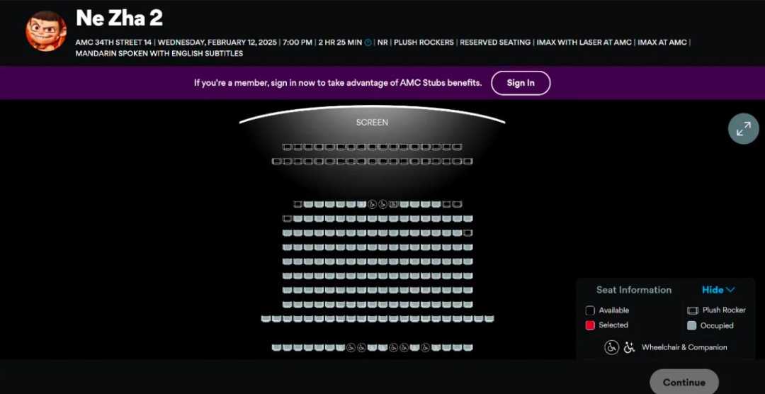 社交平台上,许多IP属地显示海外的网友也发布了当地预售场次“满座”的截图,放映厅中的“黄金座位”基本售罄,仅剩首排或边角座位仍有空缺。