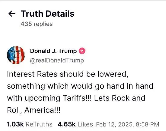 不过,美国总统特朗普最新表示,利率应该下调,降息将与即将实施的关税政策相辅相成。