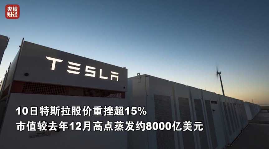 10日,特斯拉股价大幅下跌超15%,市值较去年12月高点蒸发约8000亿美元