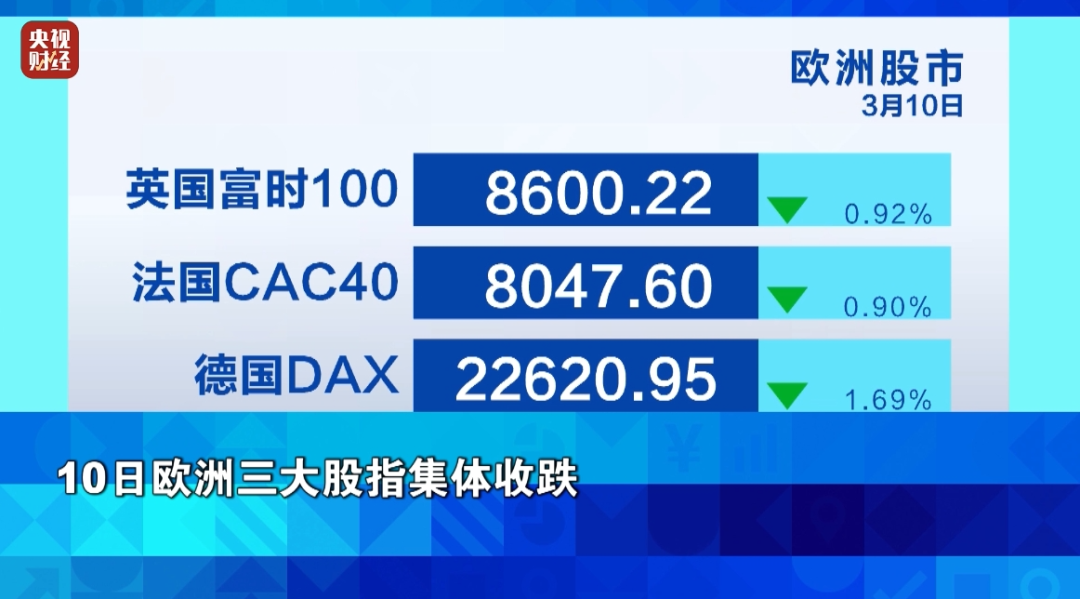 当地时间周一,市场对美国经济衰退的担忧加剧,特朗普和财长言论引发抛售潮,美国三大股指全线收跌。特斯拉股价暴跌超15%,市值蒸发约8000亿美元。高盛下调2025年美国经济增长预期。欧洲三大股指集体收跌,国际油价和国际金价也均下跌。
