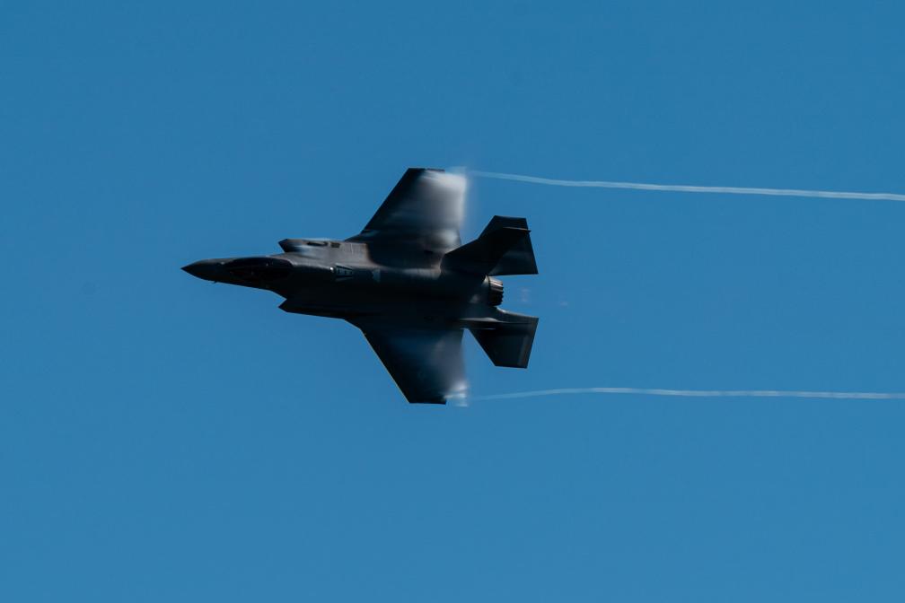 2023年10月14日,在美国休斯敦航展上,F-35闪电飞行表演队的一架飞机进行表演。新华社发(陈晨摄)
