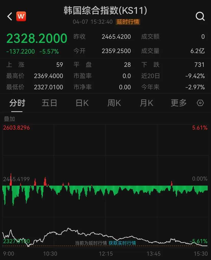 韩国市场方面,据韩联社报道,韩国金融委员会7日紧急召集会议,要求各金融机构在美国实施“对等关税”的情况下,确保及时提供资金支持。同时,韩国证券交易所启动了暂停程序化交易的“临时停牌”措施,以应对KOSPI200指数期货的熔断。