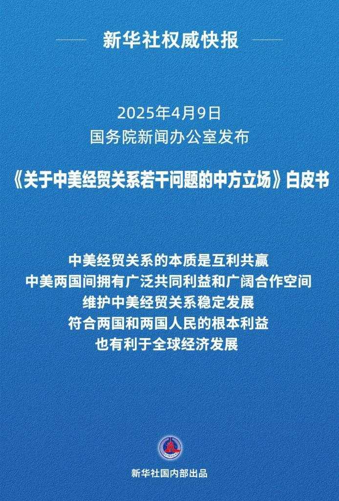 国务院新闻办公室发布《关于中美经贸关系若干问题的中方立场》白皮书,详细阐述中美经贸关系互利共赢本质,指出美方违约行为,强调通过对话协商解决问题的重要性。