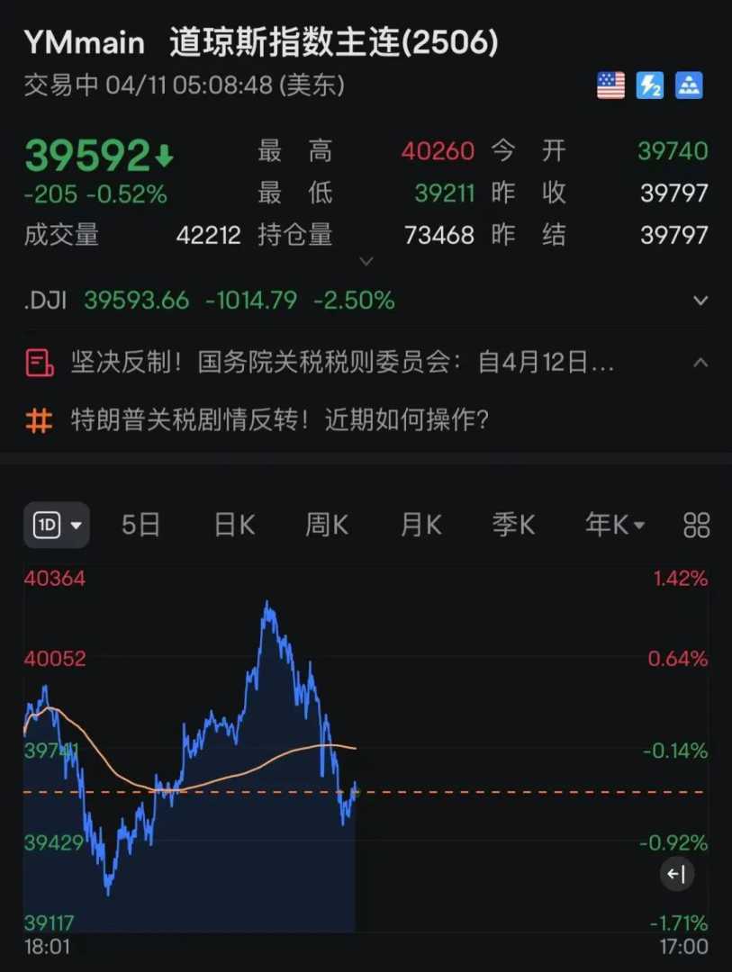 全球股市遭遇重挫,美国三大股指期货和欧洲主要股指纷纷跳水下跌。避险情绪升温,黄金、白银价格上涨。同时,中美贸易关税争端再次升级,中国对美加征关税提高至125%。