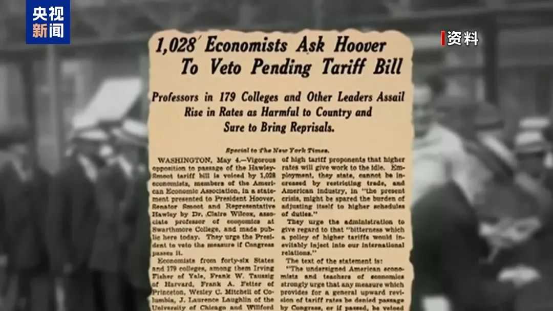 1930年,经济大萧条期间,胡佛总统不顾经济学家反对,签署《斯穆特-霍利关税法》,对2万多种商品加征高额关税。引发全球报复,美欧贸易量锐减三分之二,全球经济重创。美国经济深陷萧条。