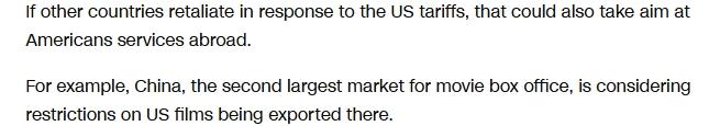 美媒警告,若服务贸易领域被拖入贸易战,美国就业将面临巨大风险。特别是当中国等国家对美国电影产业等服务贸易领域采取反制措施时,美国相关产业将受到严重打击。