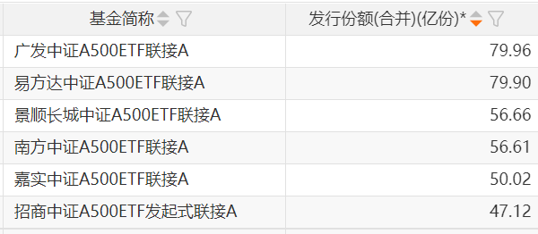 具体来看,中证A500指数相关基金成为此次吸金的主力军。其中,广发和易方达的中证A500指数基金发行规模均接近80亿元,并成功转型为中证A500ETF联接基金。此外,景顺长城、南方和嘉实的中证A500ETF联接基金发行规模也在50亿元以上。同时,第二批12只中证A500ETF也全部成立,合计发行规模达到240亿元。