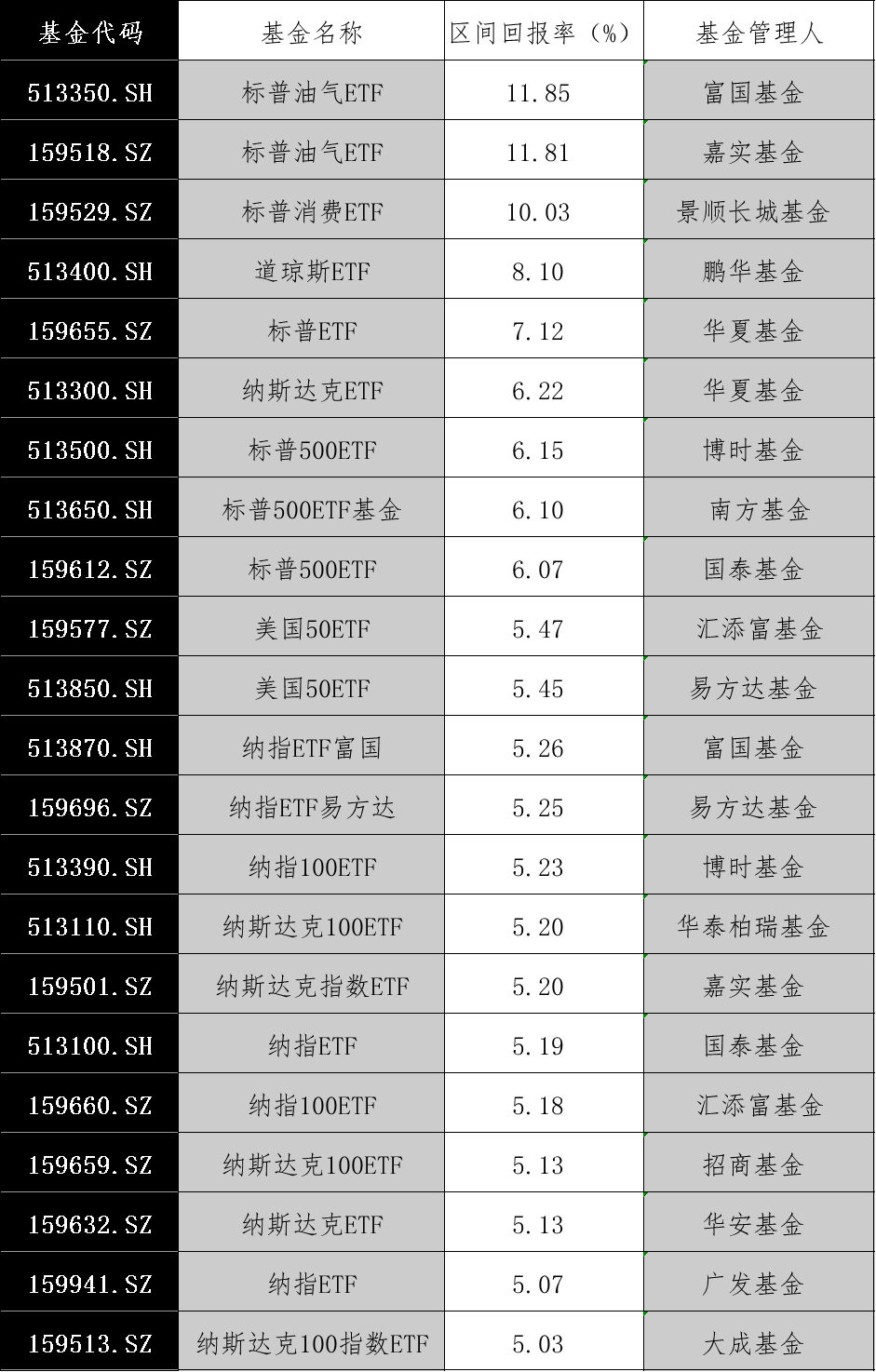 11月跨境ETF市场表现抢眼,“标普系”“纳指系”成赚钱利器