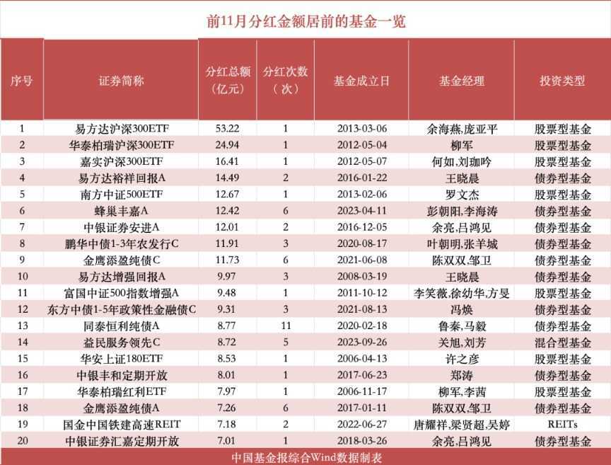 【导读】公募基金分红盛况空前,前11月分红总额超1750亿元。
