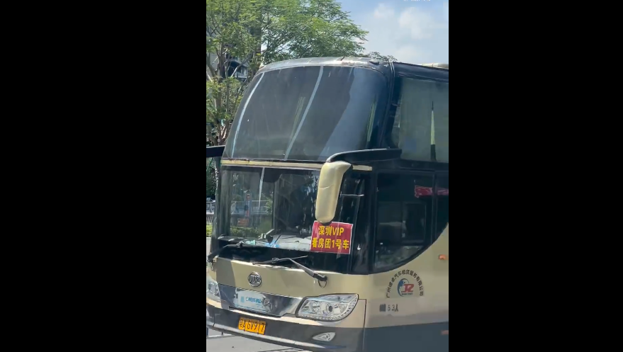 被广州房产中介用作宣传的看房团专车照片,视频截图。
