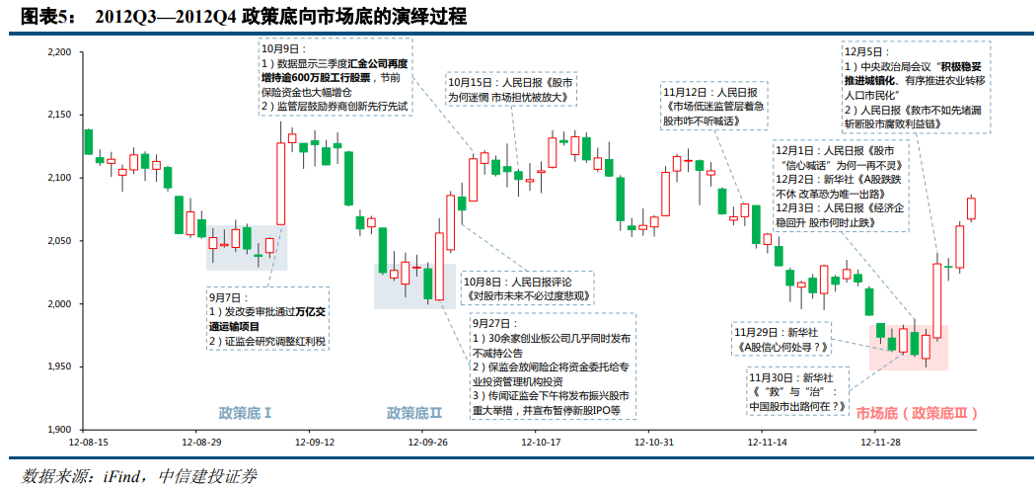 2012年三季度至四季度,市场经历了三次政策底才最终确认市场底。