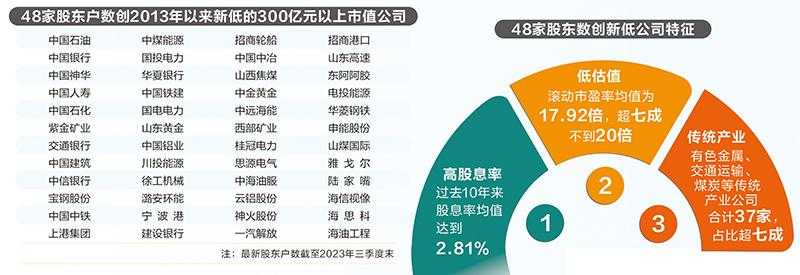 中国石油作为传统产业代表,营收利润增长稳定,分红持续,因此受到大资金的喜爱。机构持仓占比一直较高,显示出长线资金对传统产业的坚守。此外,A股市场中还有多家传统产业龙头公司股东户数呈现减少趋势,这些公司普遍具有低估值高股息率的特征,主要分布于有色金属、煤炭、交通运输等行业。