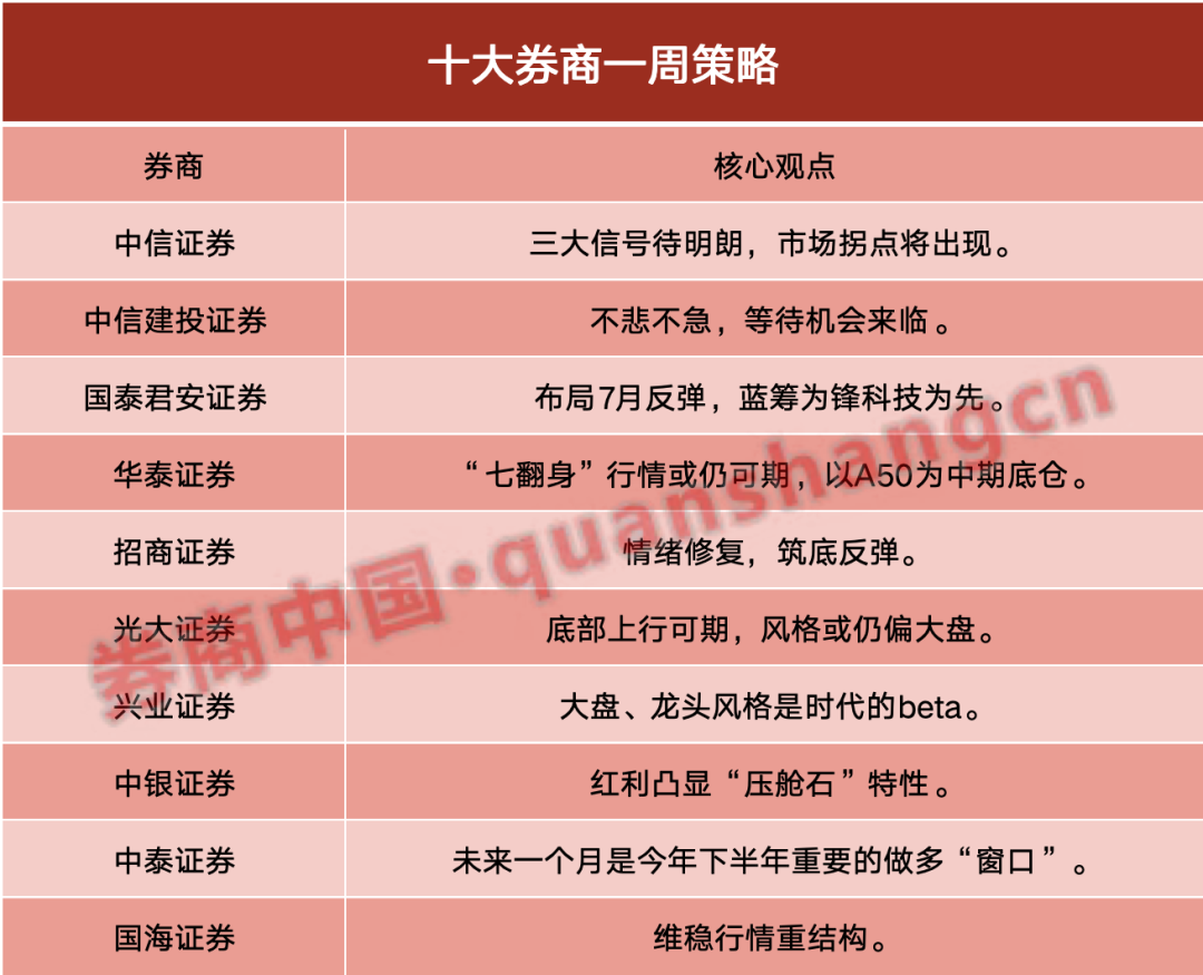 多家券商对三季度A股市场进行展望,提出不同布局策略。中信证券认为三季度市场拐点将至,国泰君安证券建议关注蓝筹与科技板块,华泰证券则看好A50为中期底仓的“七翻身”行情。