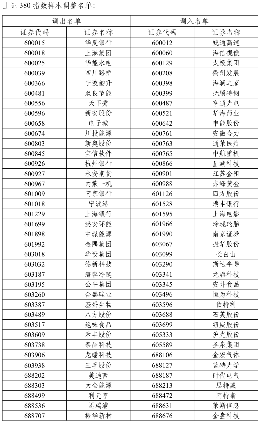 上交所宣布重大指数样本调整