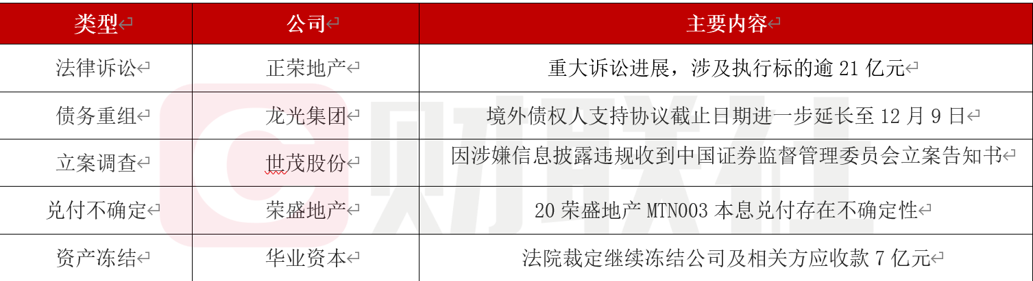 荣盛房地产发展股份有限公司公告称,“20荣盛地产MTN003”应于2024年12月10日兑付的本息存在一定的不确定性。此前,公司已构成违约,未能按时兑付“20荣盛地产MTN002”本金及利息。